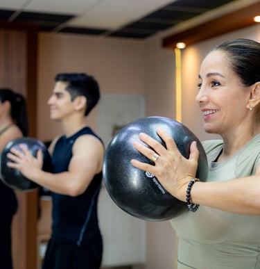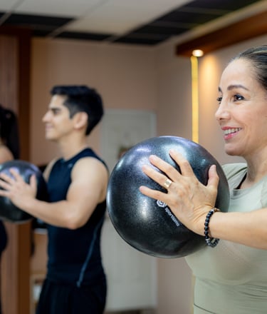 Sesiones con ejercicios en Reformer, enfocadas en fuerza, flexibilidad y control postural. Ideales para entrenar en grupo con guía profesional y equipo especializado.
